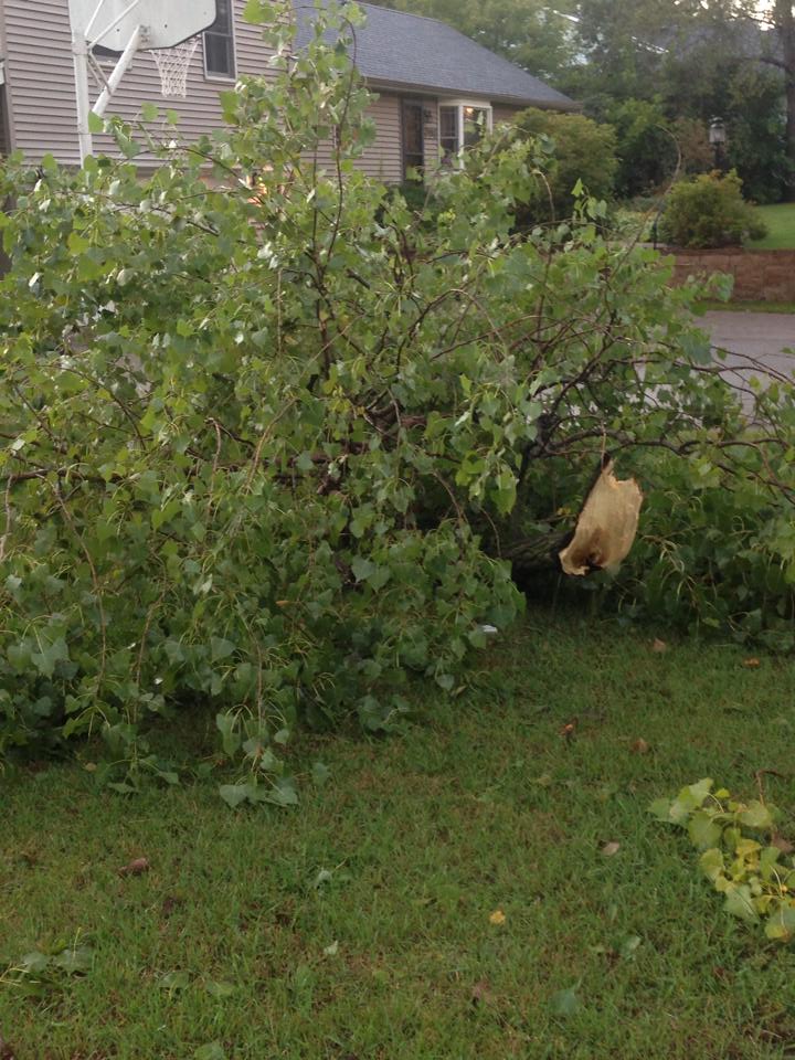 The tree company owner, upon inspection of our tree closest to the street, found a crack. From that tree, they took one more gigantic arm off than they had planned originally, which increased the cost a little. Taking down the arm didn't solve the crack issue completely but helped with extra weight and any twisting-like pressure coming from the now missing arm. The owner offered to come back at a later time and install a bolt to help with support and healing if the crack got worse. Fingers crossed, so far so good.