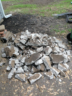 A pile of concrete from the hidden sidewalk. Perhaps a portal to another world has been lost forever.